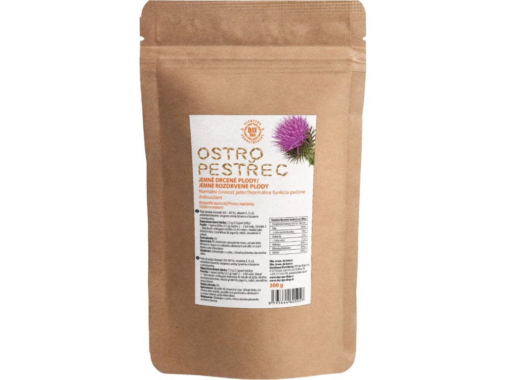 Milk Thistle s vysokým obsahom aktívnej zložky silymarín, ktorý je známy vďaka svojim detoxifikačným účinkom a blahodarnému pôsobeniu na pečeňové tkanivo. Silybum mariánske obsahuje flavonoidy, pomáha udržiavať správnu hladinu sacharidov, podporuje detoxikáciu organizmu a zvyšuje jeho odolnosť voči faktorom okolitého prostredia.